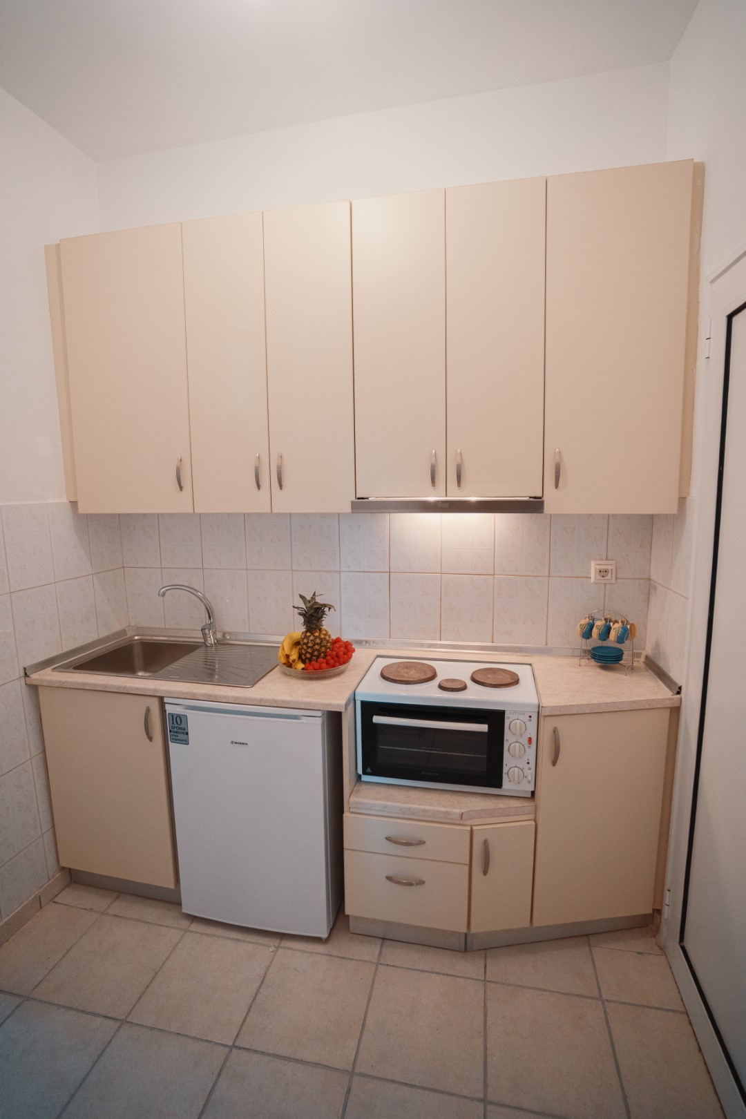 Each studio consists of an open-plan hall-kitchen, bedroom, bathroom, a well-kept terrace with flowers, with the possibility of placing a table and chairs.