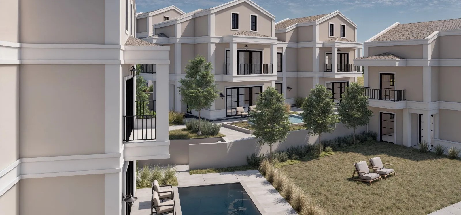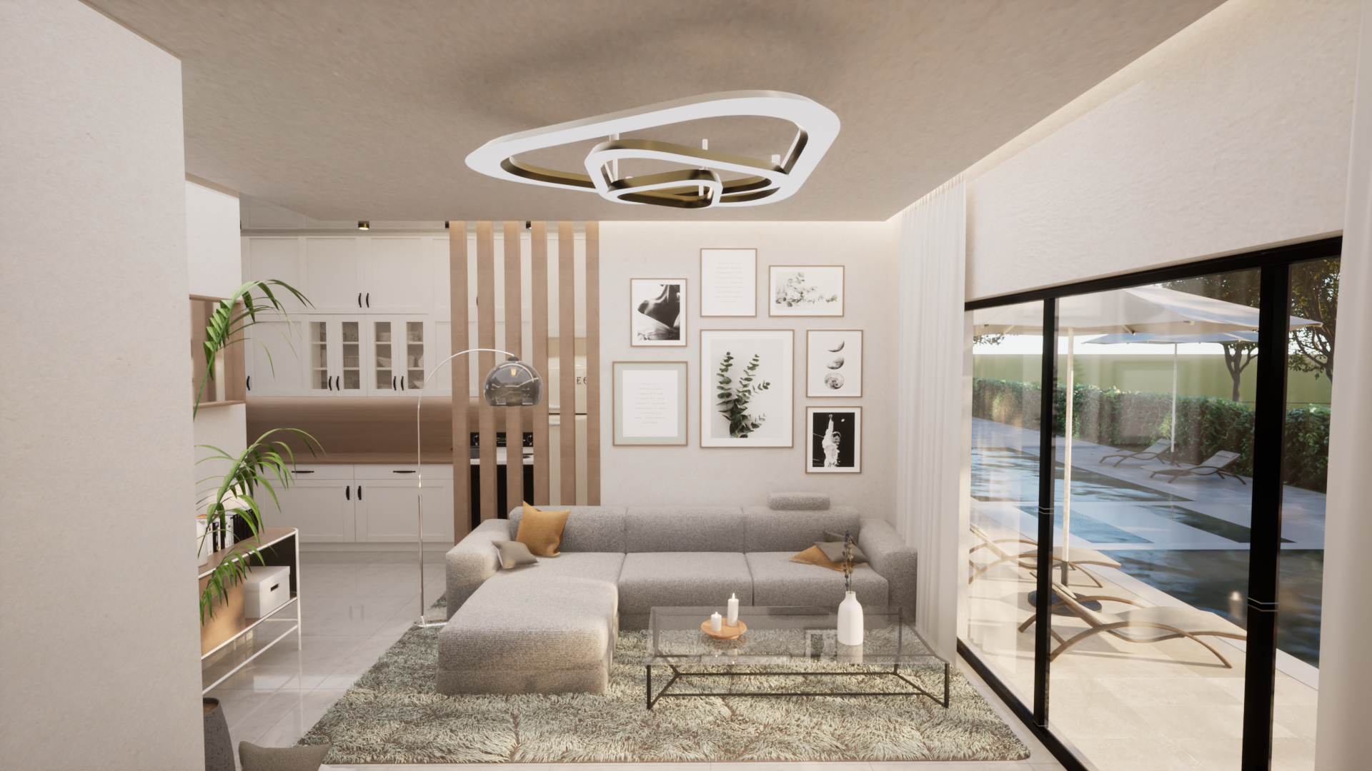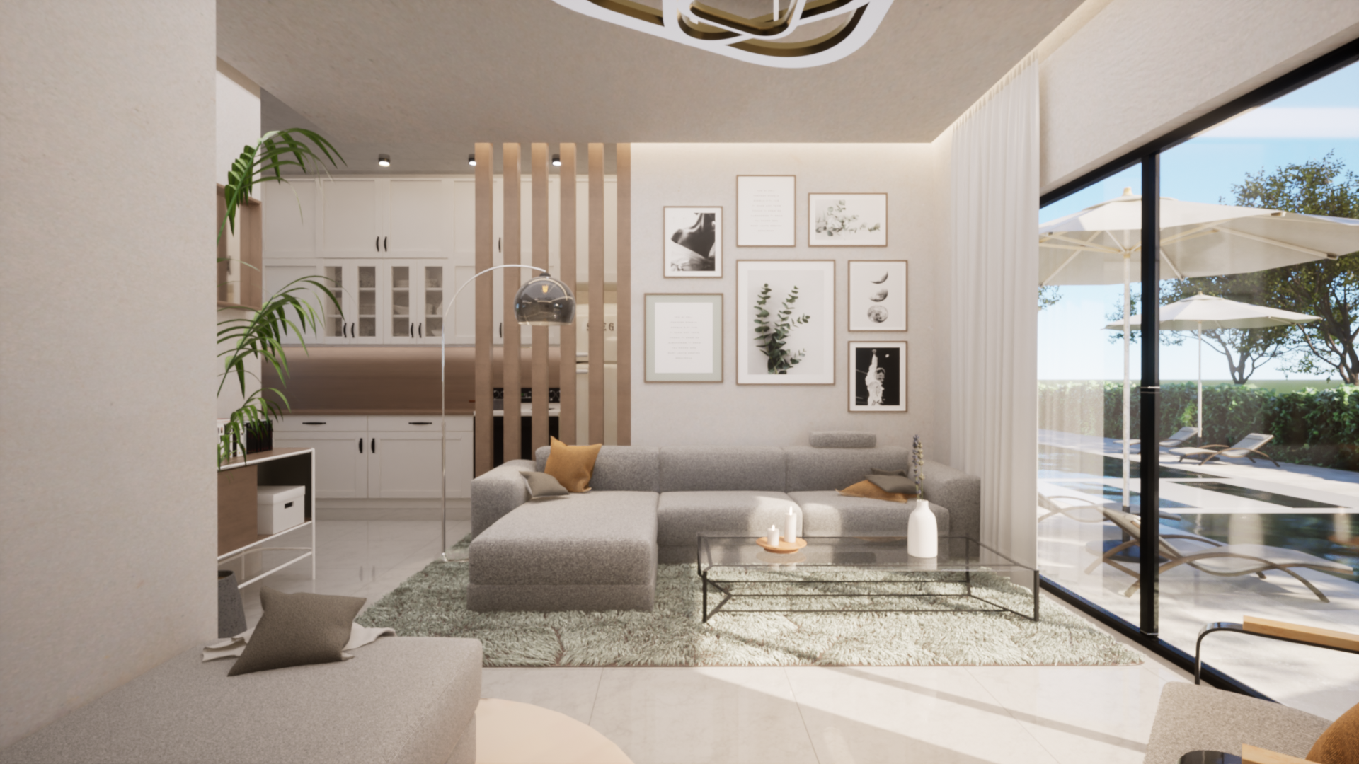 Ο εξωτερικός χώρος του ακινήτου είναι διαμορφωμένος με καλαίσθητη φύτευση, πλακόστρωτα, ιδιωτική πισίνα διαστάσεων 4×6 (24 τ.μ.), καθώς και αποκλειστικό χώρο στάθμευσης.