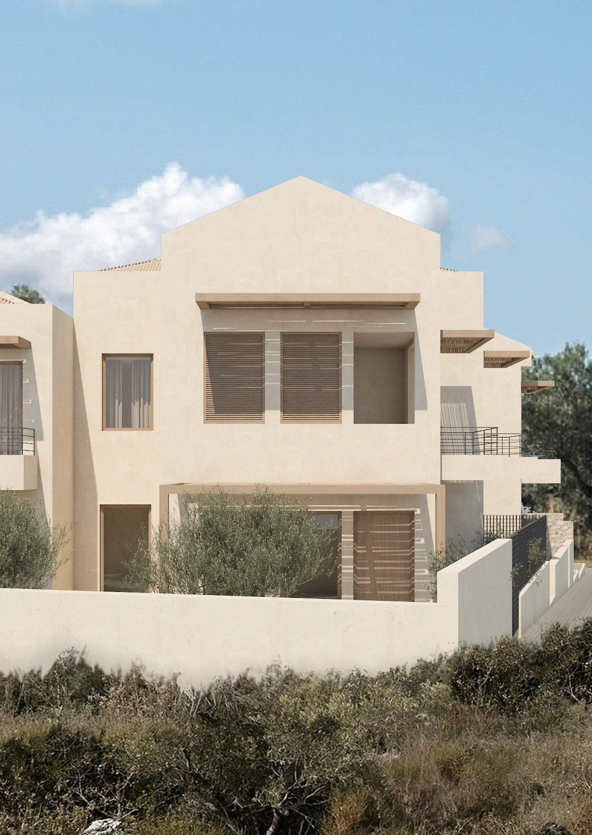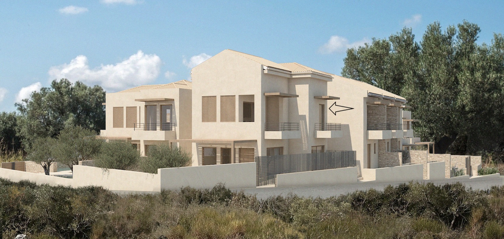 Το εξωτερικό της κατοικίας διαθέτει χώρο για την δημιουργία ιδιωτικού κήπου και BBQ .